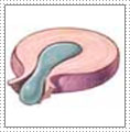 This picture which gives us a top end view of the disc clearly shows the relationship of the disc and the two nerves on each side (green in colour). Annulus is the tough part we were talking earlier and the nucleus is the soft gel we mentioned earlier. A disc bulge to right will cause right sides leg pain or the classical sciatica.