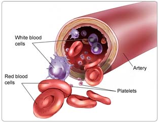 Thrombocytopenia is an unusually low level of platelets in the blood. Platelets, also called thrombocytes, are the blood cells that stop bleeding by plugging damaged blood vessels and helping the blood to clot. Patients with low levels of platelets bleed more easily and are prone to bruising. Platelets and red and white blood cells are made in the bone marrow, a spongy, fatty tissue found on the inside of larger bones. Certain types of chemotherapy can damage the bone marrow so that it does not make enough platelets. Thrombocytopenia caused by chemotherapy is usually temporary. Other medications used to treat cancer may also lower the number of platelets. In addition, a patient's body can make antibodies to the platelets, which lowers the number of platelets.