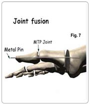 This passes down from the end of the toe and across the joint to be fused. The skin is then closed up with stitches. After your operation, you will not be able to bend the toe joint.